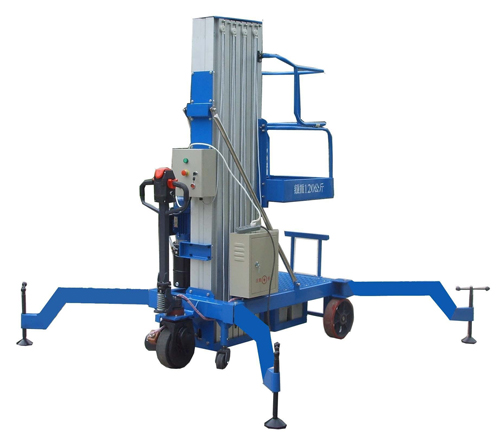鋁合金液壓升降機(jī)整機(jī)重量輕,機(jī)動性好,適合單人操作;特制的桅柱間導(dǎo)輪裝置,升降平穩(wěn)自如;結(jié)構(gòu)緊湊,運(yùn)輸狀態(tài)尺寸小,可進(jìn)入一般電梯的轎廂以及能順利通過門洞和狹小通道;雙重保護(hù)的支腿結(jié)構(gòu),工作更安全,且可貼近工作面升降作業(yè);根據(jù)使用場所高的要求,可做成手動放到或電動放到式升降平臺。以滿足門口比較低時使鋁合金升降平臺無法進(jìn)入的情況。